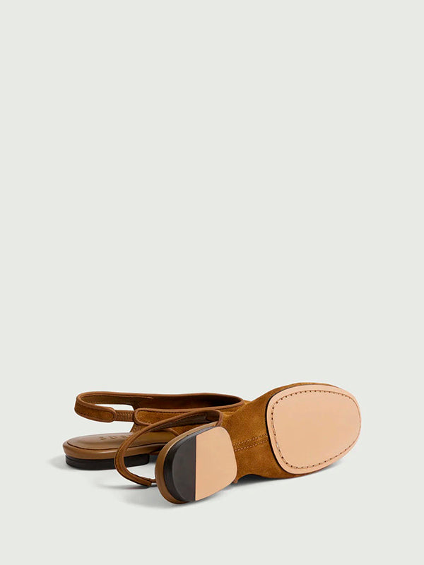 - Round-toe suede leather slingbacks