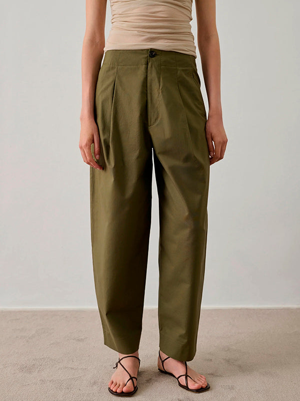 - Pressed crease detail on the leg