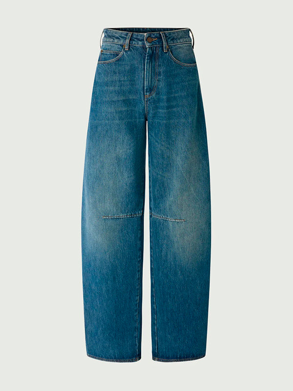 - Darts at the knees and leather patch