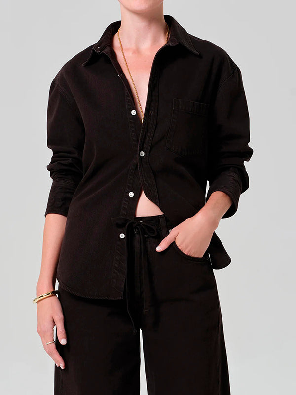 The Carter Shirt is a timeless button-up, cut from soft twill shirting with an airy, breathable hand. Designed with a relaxed silhouette and long sleeves, it drapes effortlessly for a laid-back yet polished feel. Wear it tucked, layered, or left loose for versatile everyday styling.